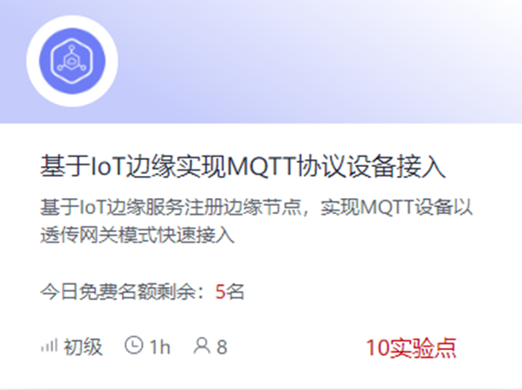 华为云IoT沙箱实验新品上线,诚邀广大开发者参与体验。一键创建实验环境,开发者通过实验手册指导,快速体验华为云IoT服务,在云端即可实现云服务的实践、调测和验证等开发流程。轻量级的实验,不仅为了让开发者快速上手,更好了创建良好的体验感受。3个轻量级物联网新品实验,带您深度体验华为云IoT服务。