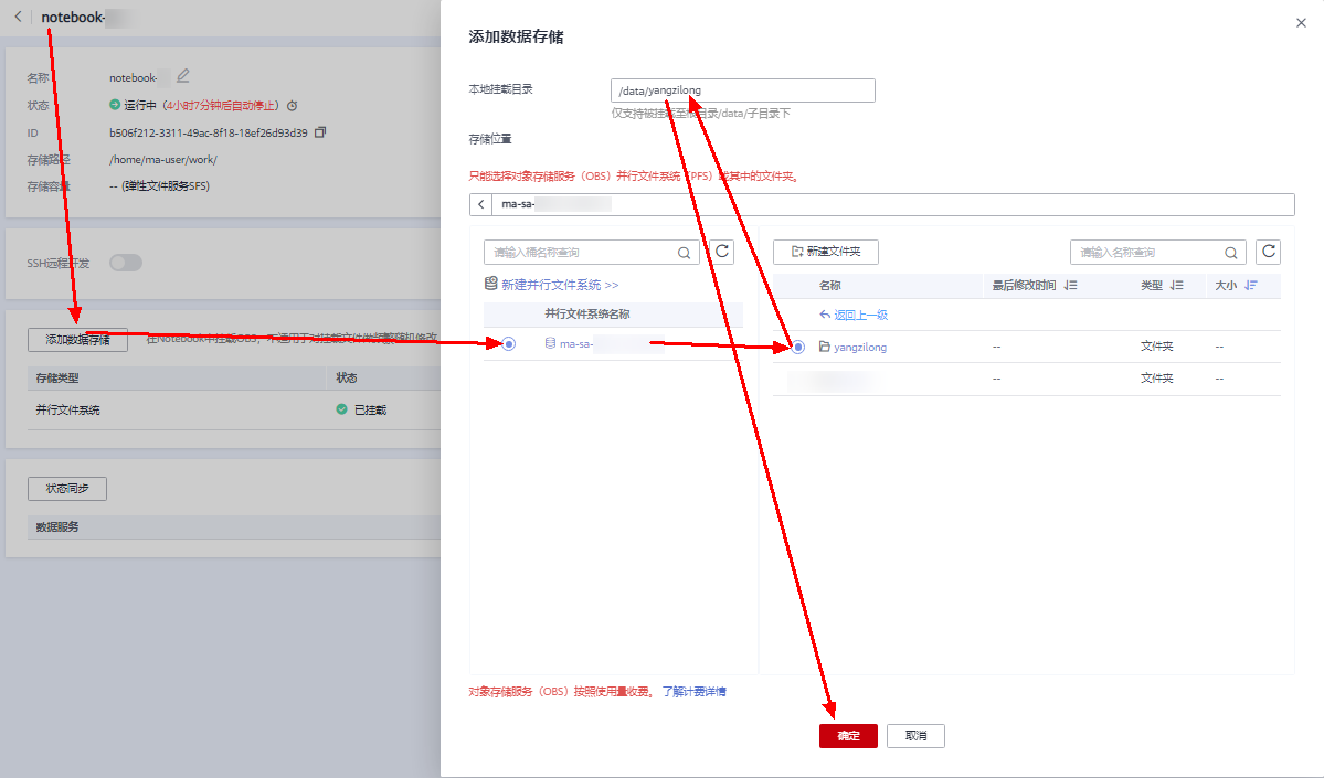 利用Notebook挂载PFS桶,并追踪TB的日志信息。挂载操作如截图: