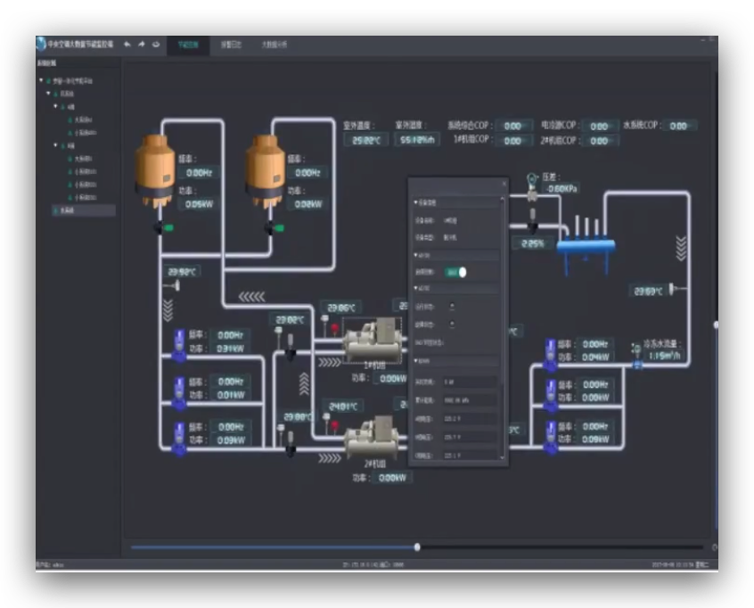 基于气候变化的冷冻水供回水干管压差,供水温度, 冷却水回水温度优化:根据系统排热量需求(参考冷却水回水温度),通过控制冷却塔风机启停台数,对冷却塔风机实施按需风量控制,根据室外气象参数及系统运行数据优化冷冻水供回水压差设定值,实现冷冻水泵的深度节能。