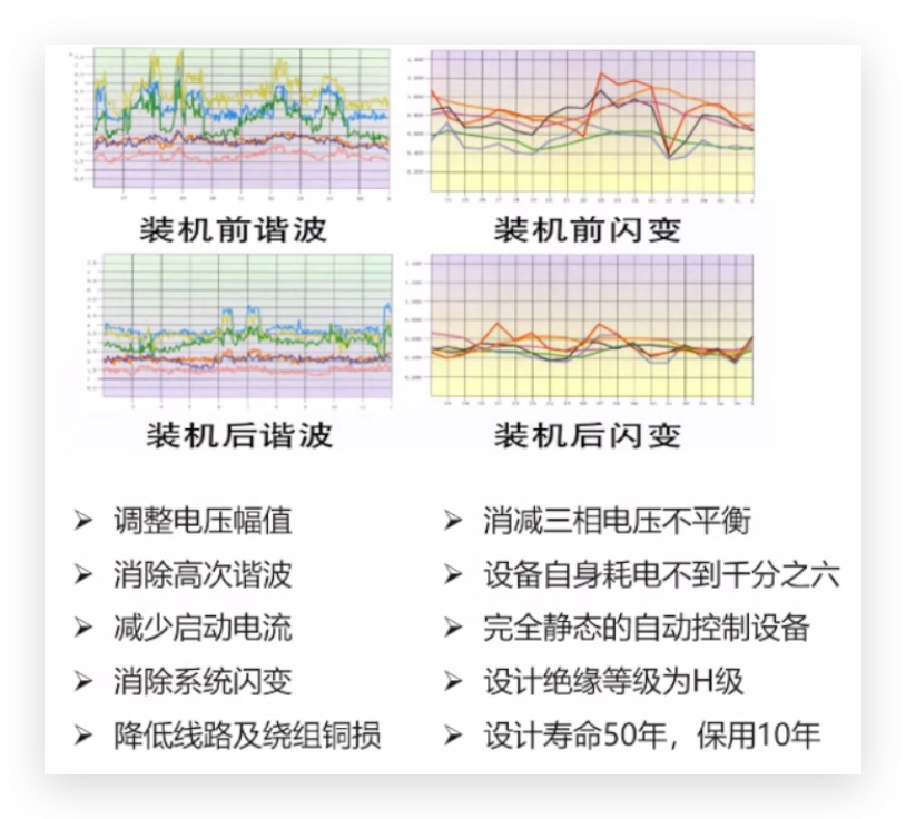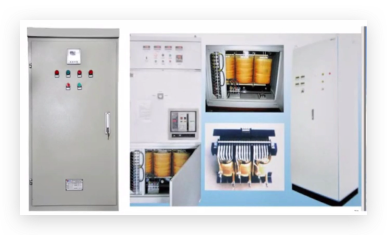 电源质量调整装置设备其内部结构是由一个串联电抗器和一个并联自耦固定式调压器连接在一起并固定在同一个三柱式铁芯上。同时,装置内部附有消减电力网传送来的高次谐波分量(主要是3、5、7次)的阻波或陷波回路。