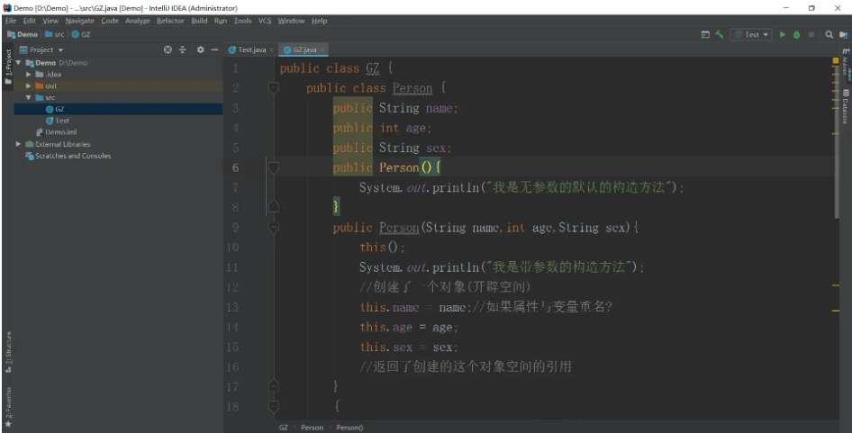 1.每一个类都有构造方法,若自己在类中没有定义,系统会默认提供一个无参数的构造方法