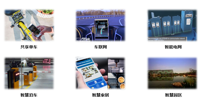 下图第一个共享单车,应该是大家比较常见的一个场景。从我们掏出手机,扫码解锁,骑行到目的地之后,停车锁车。在整个过程中,其实就形成了一个物联网的经典场景。单车作为一个物,与我们的手机建立了联系,我们通过手机可以控制单车开关锁,同时单车也将我们的实时位置上报给手机应用,把有价值的信息呈现通过应用到我们的面前。