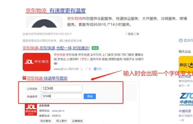 - 快递单号输入内容时,上面的大号字体盒子( con )显示(这里面的字号更大)
