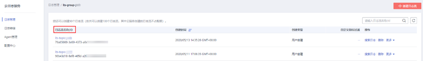 - 云服务创建:指华为云其他云服务与云日志服务进行系统对接后,系统将自动在云日志服务控制台创建日志组和日志流,云服务的运行日志将发送到对应的日志流中。
