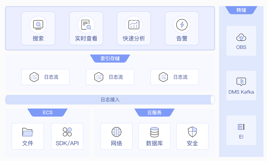 华为云日志统一管理平台, 提供从采集、接入、存储、搜索、转储(冷热分离)、结构化处理、SQL查询和可视化分析一站式服务。