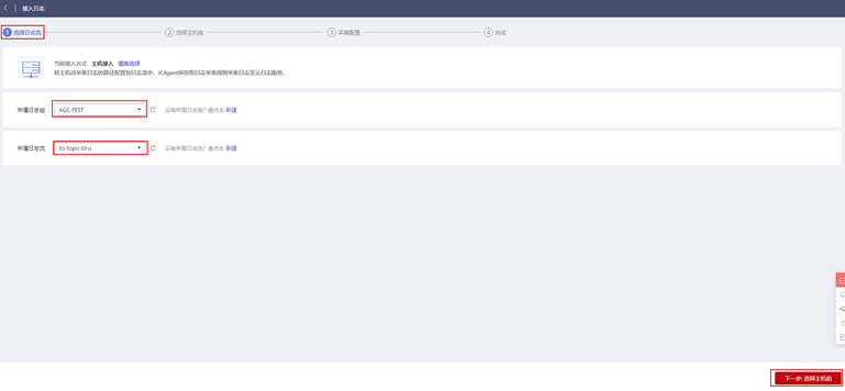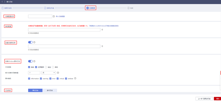 在使用主机接入完成日志接入时,在第3步采集配置的具体配置如下: