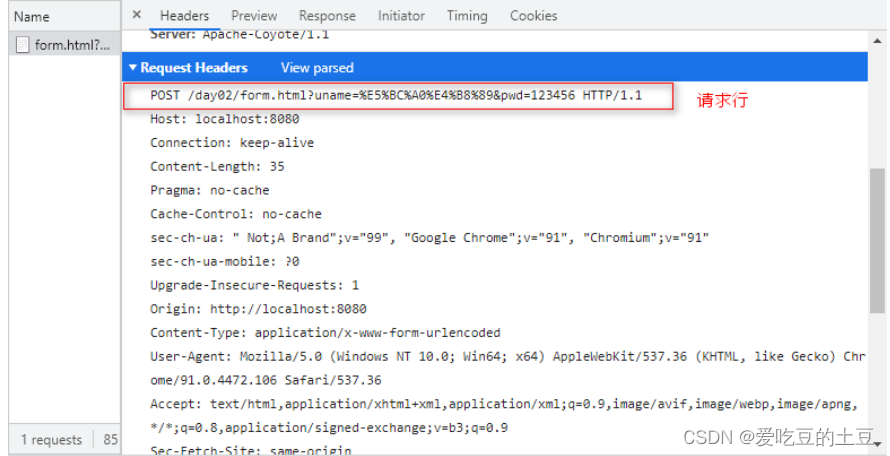 HTTP请求协议,是浏览器把信息发送给服务器的方式。