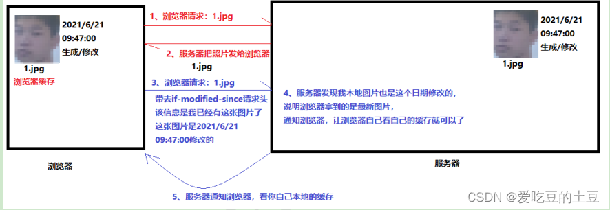 - 看缓存:服务器发现浏览器的资源是最新的,通知浏览器用缓存即可。服务器没有传递资源二进制数据