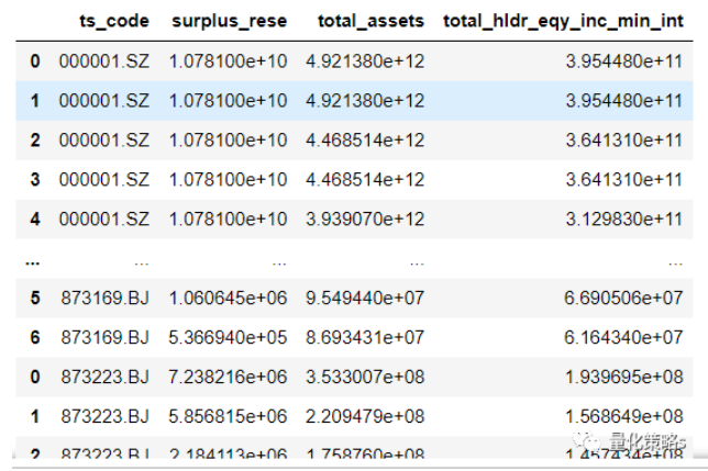 all_data = pd.DataFrame(columns=['ts_code', 'surplus_rese', 'total_assets', 'total_hldr_eqy_inc_min_int'])