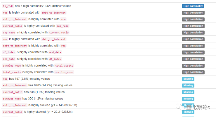 从警告可以看到,主要是某些变量相关性比较高,比如roa与ebit_to_interest,并且后者的缺失比较严重,所以我们对指标进行精简,去掉ebit_to_interest、surplus_rese和cap_rate。