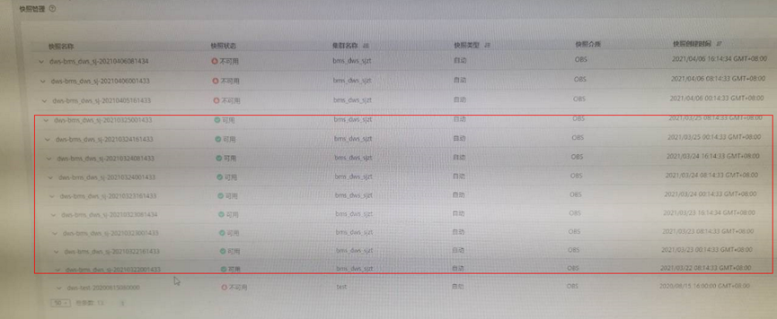 DWS快照定时删除有问题,删除有快照文件残留,造成文件堆积,占用大量obs空间,长期积累可能导致 obs空间爆满,影响其他服务及本服务的正常运行。