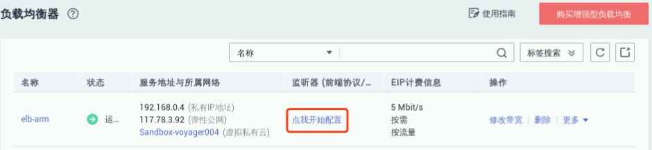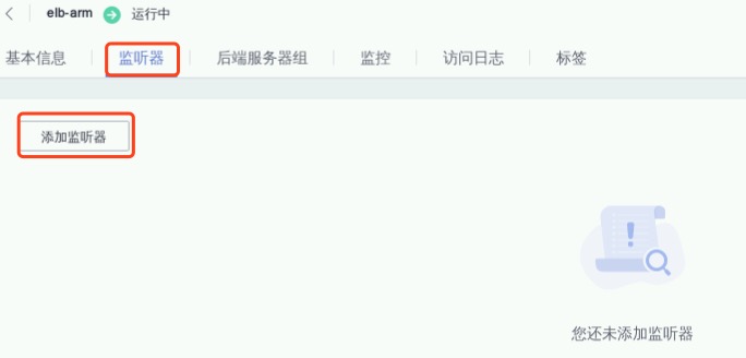 点击上图标记“点我开始配置”,进入负载均衡详情中的“监听器”界面,点击“添加监听器”,如下
