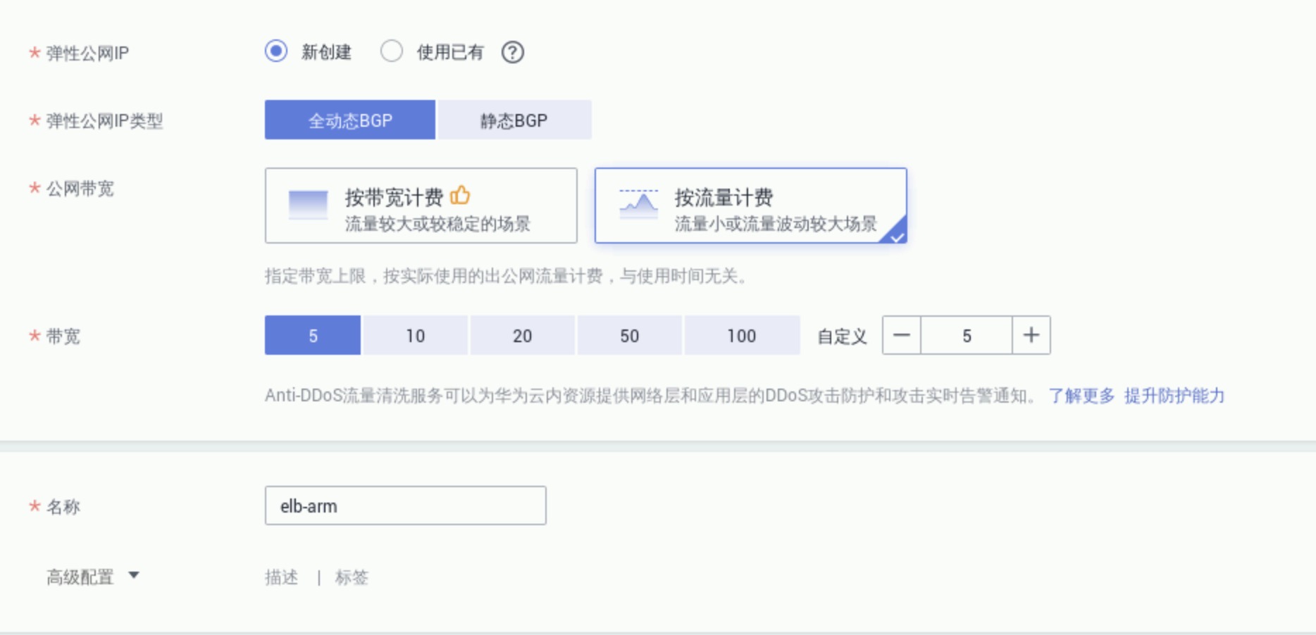 公网带宽:按流量计费,