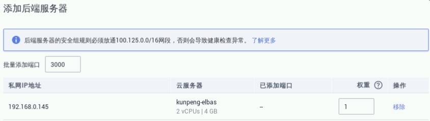 负载均衡器:选择步骤3.2创建的负载均衡器,