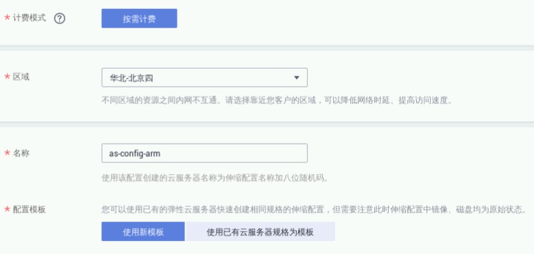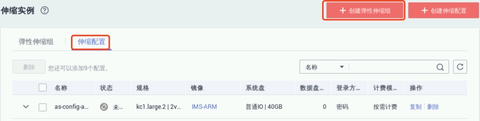 点击“创建伸缩配置”按钮,开始创建。参数如下
