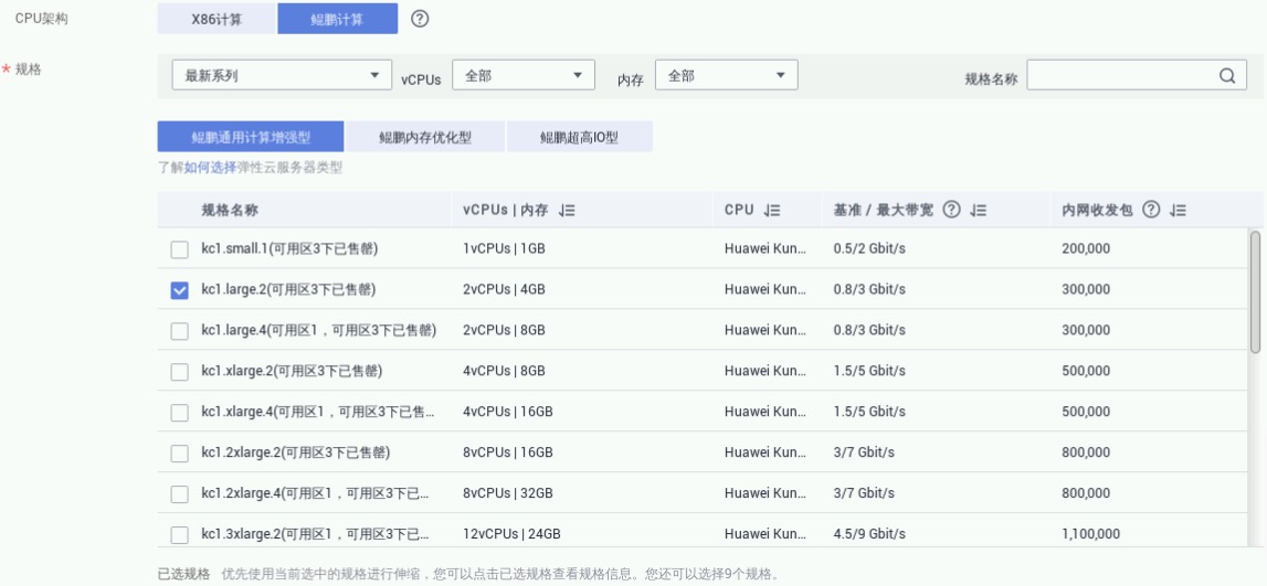 规格:鲲鹏通用计算增强型kc1.large.2/2vCPUs/4GB,