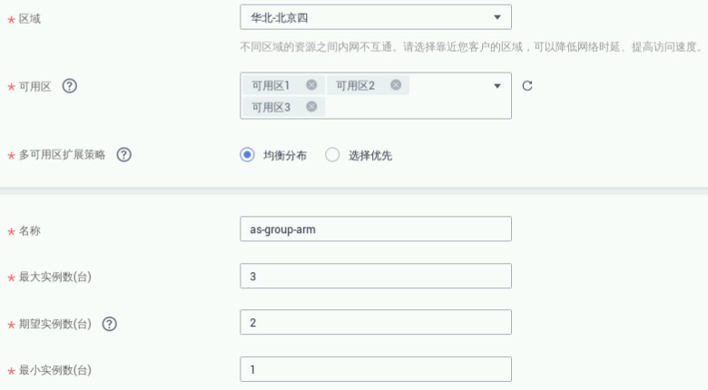 点击上图标识的“创建弹性伸缩组”开始创建,参数如下