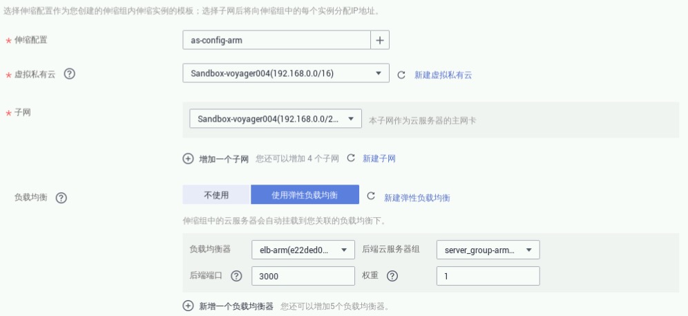 伸缩配置:选择步骤4.2创建的伸缩配置,