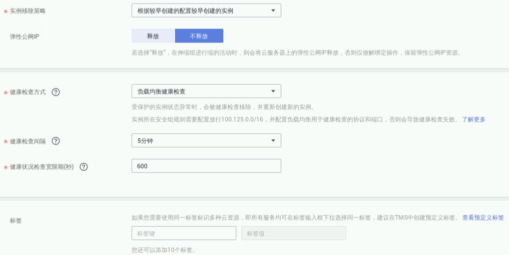 实例移除策略:根据较早创建的配置较早创建的实例,