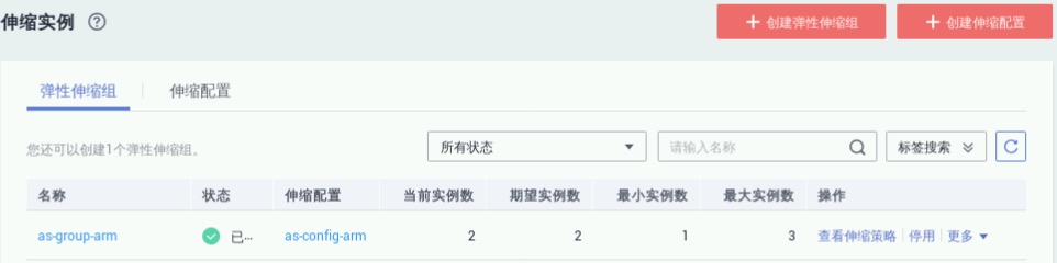 点击“立即创建”->“返回弹性伸缩组列表”查看列表,如下