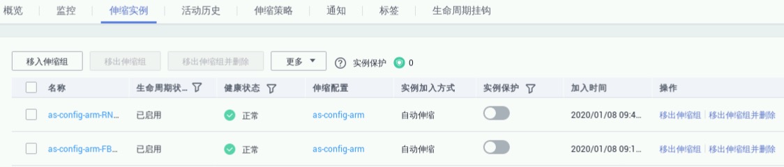 因此,点击“伸缩实例”,可以看到实例数还是两个,如下