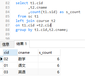 16、求每门课程的学生人数