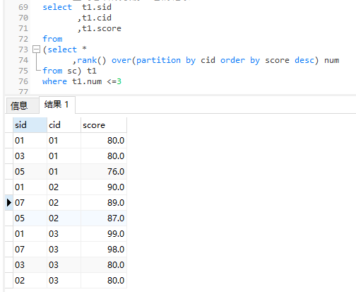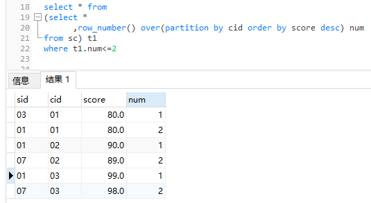 2、查询各科成绩前三名的记录