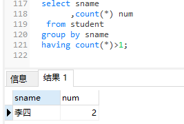 7、查询同名学生名单,并统计同名人数