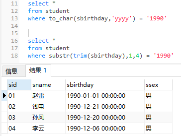 8、查询 1990 年出生的学生名单