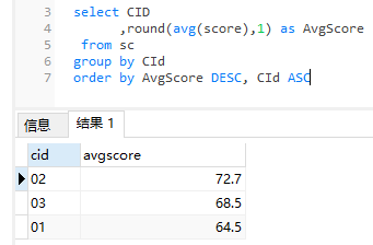 9 、查询每门课程的平均成绩,结果按平均成绩降序排列,平均成绩相同时,按课程编号升序排列 8