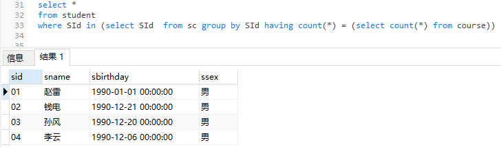 22、查询选修了全部课程的学生信息