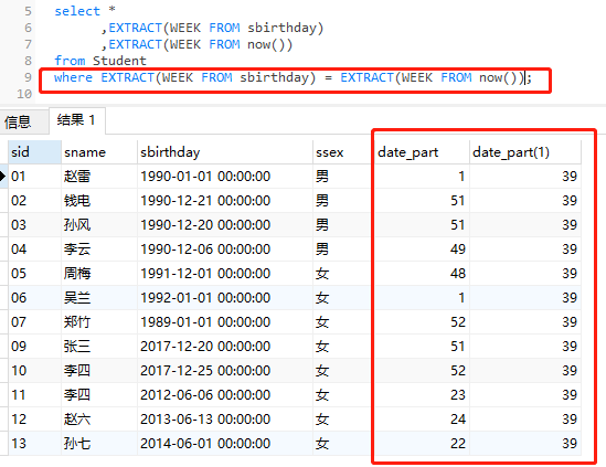 25、查询本周过生日的学生