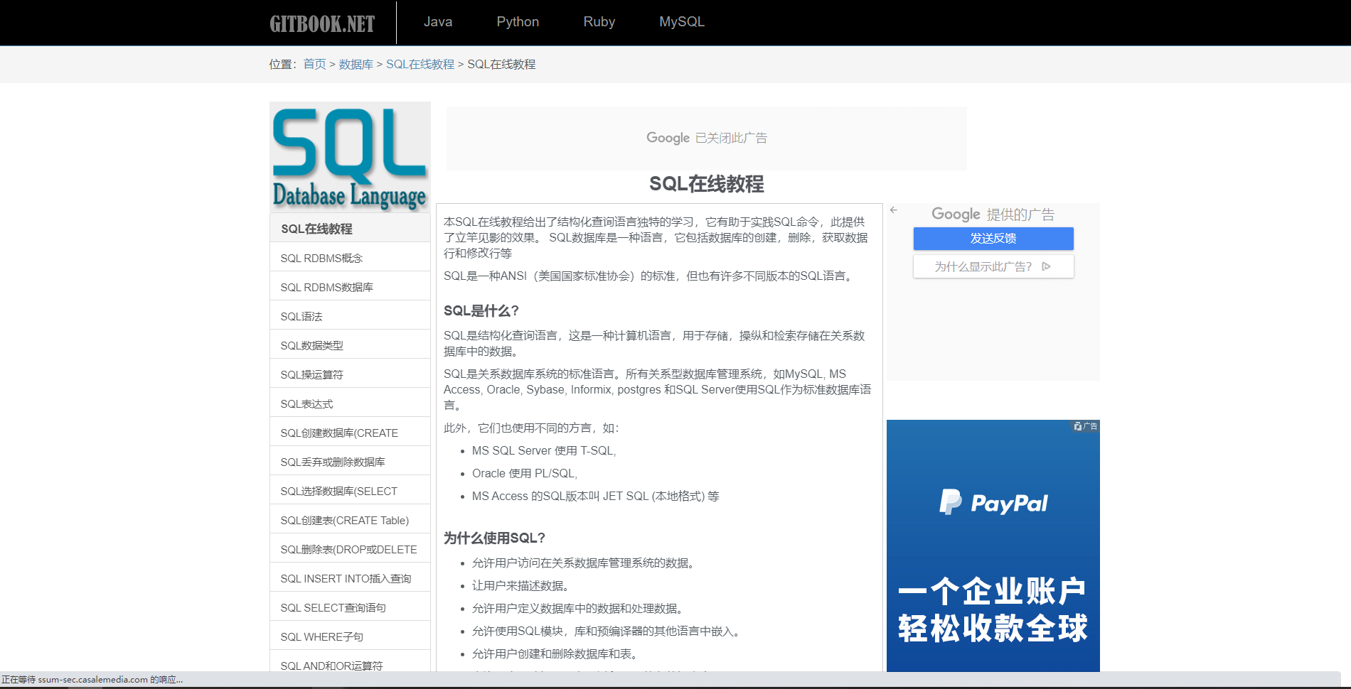2)gitbook http://gitbook.net/sql/index.html