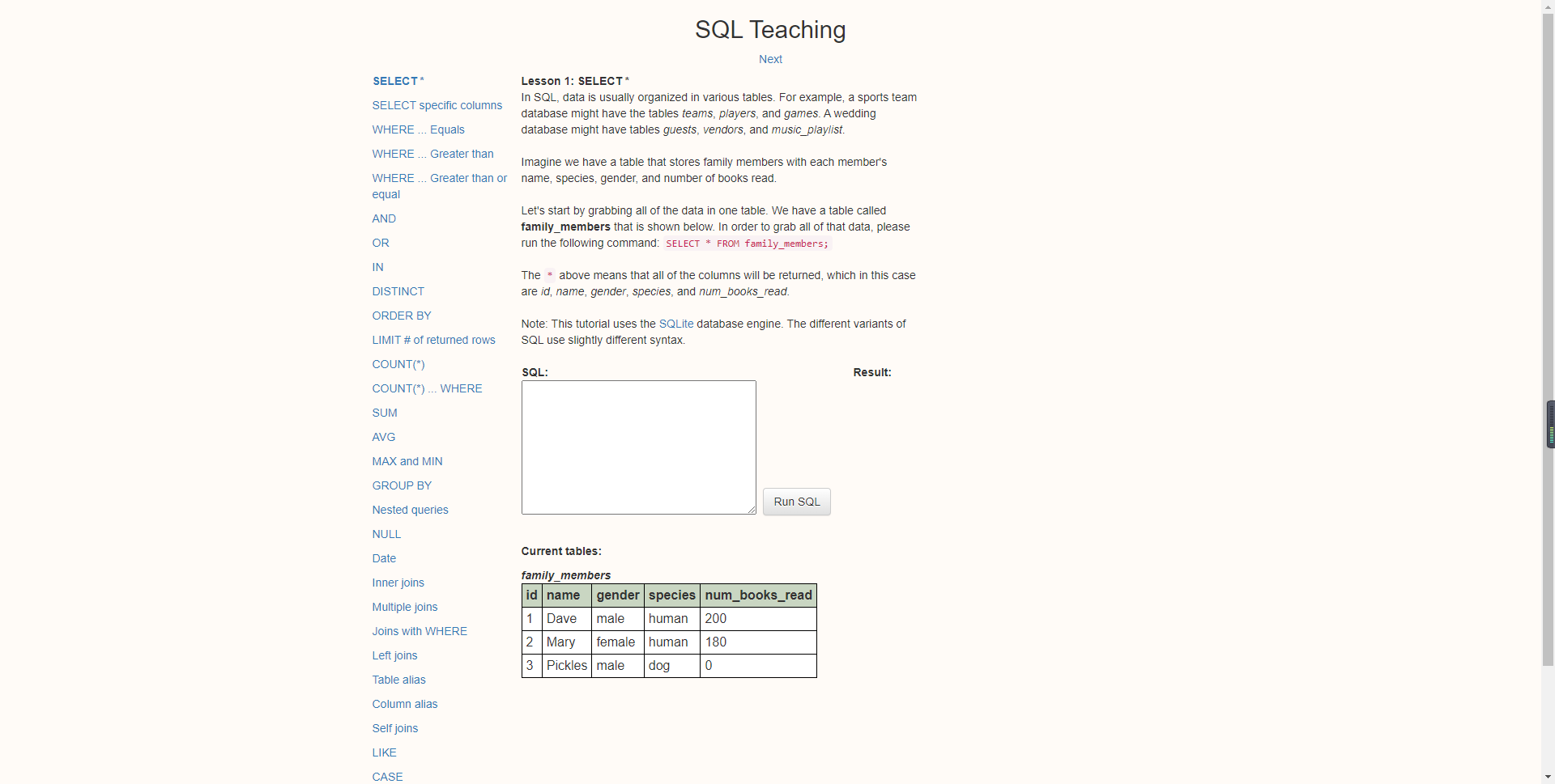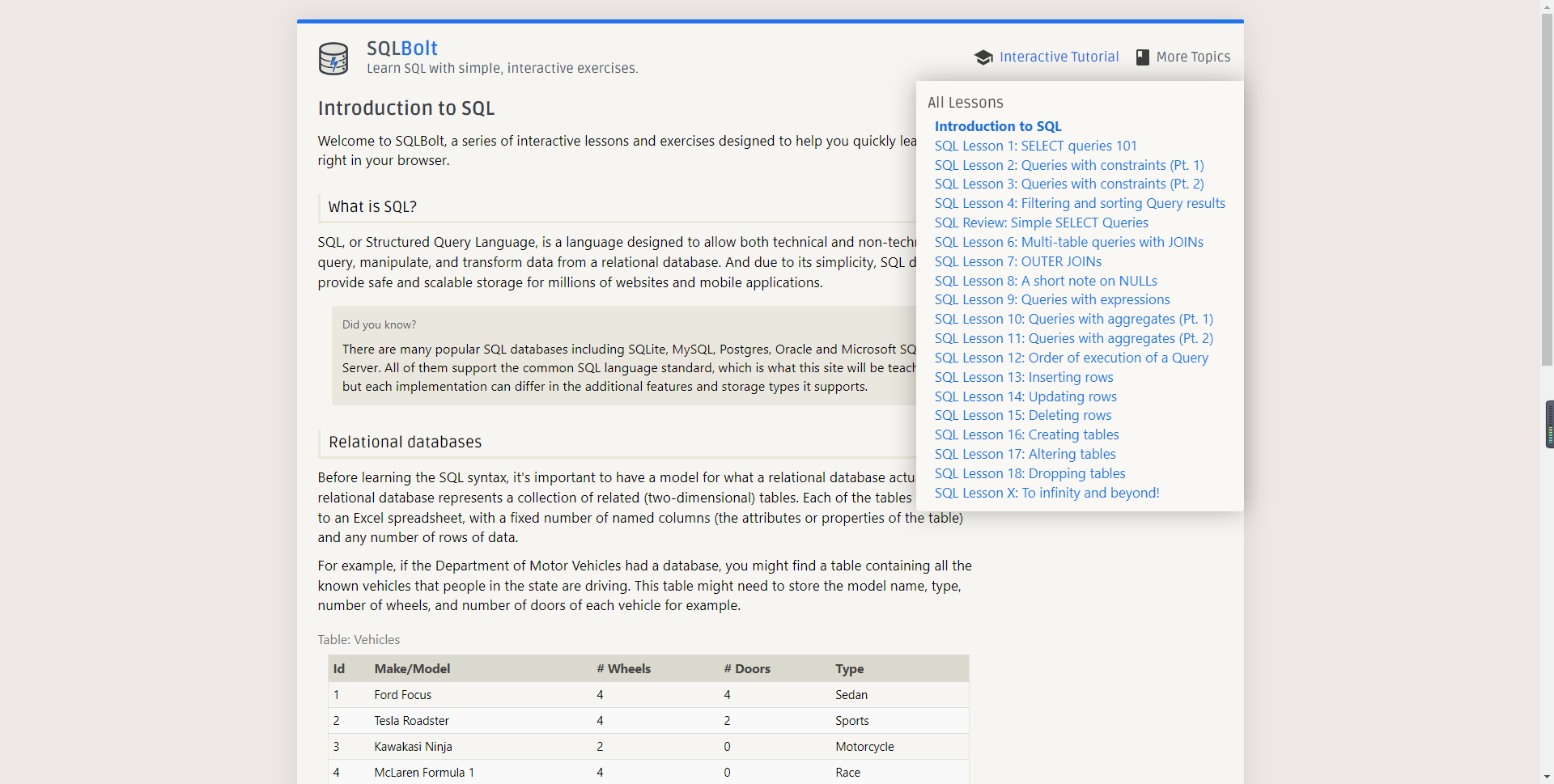 3)sqlbolt:https://sqlbolt.com/