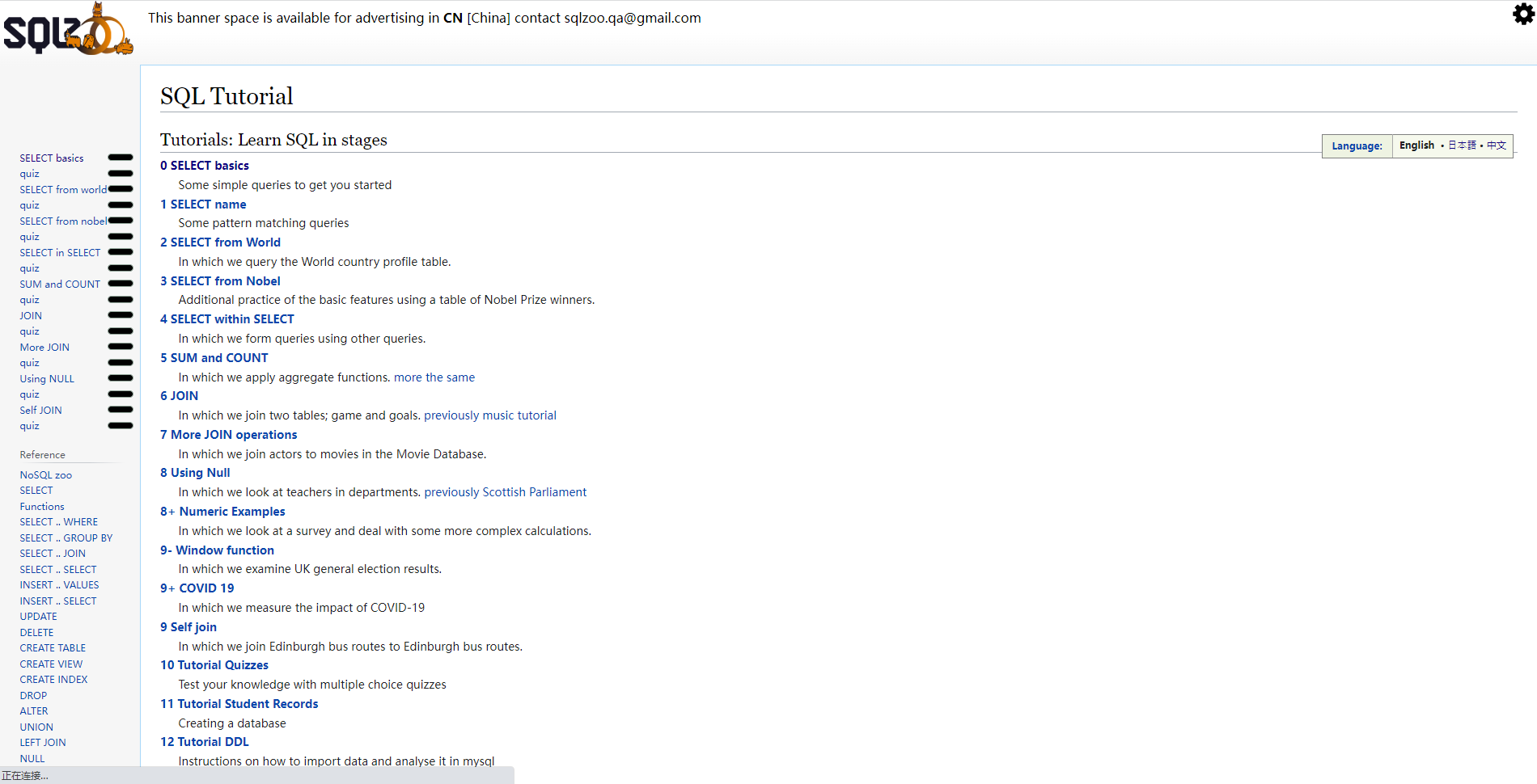 1)sqlzoo: https://sqlzoo.net/