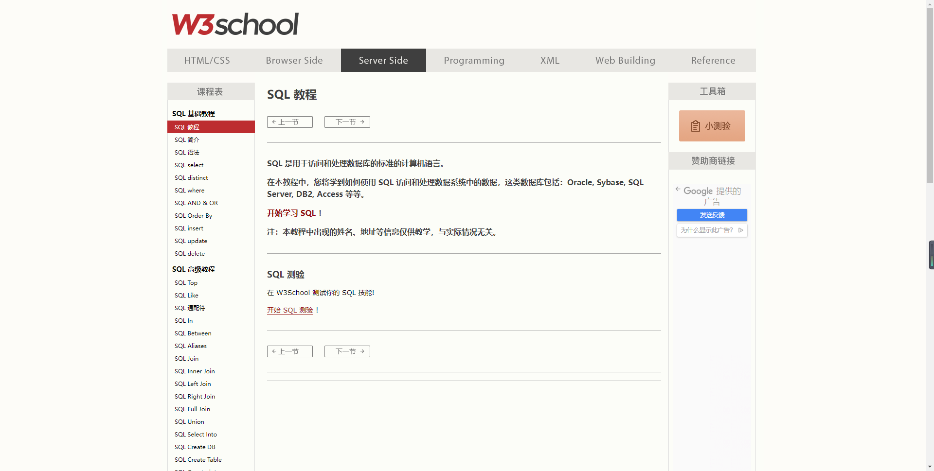4)w3school :http://www.w3school.com.cn/sql/index.asp