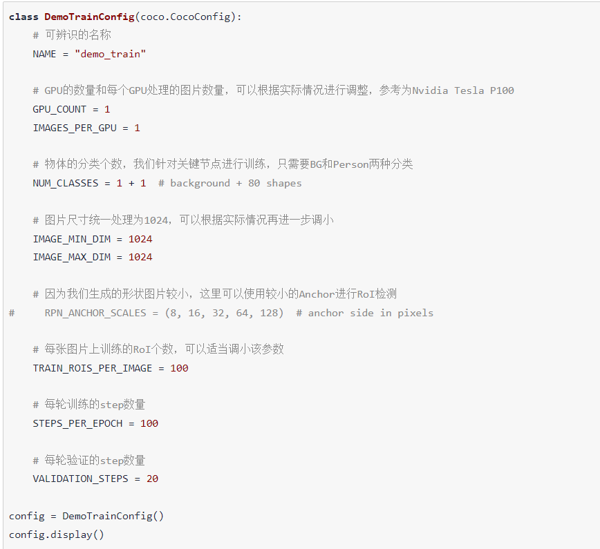 - __STEPS_PER_EPOCH和VALIDATION_STEPS__: 训练和验证时,每轮的step数量,减少step的数量可以加速训练,但是检测精度降低