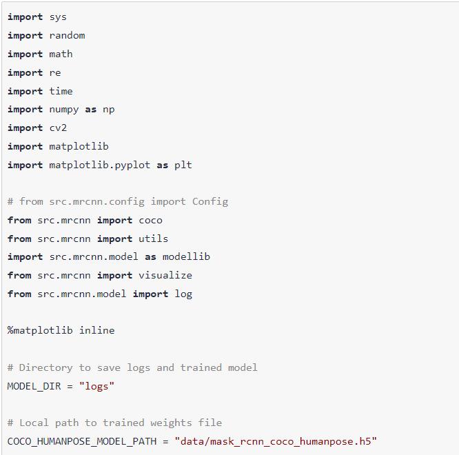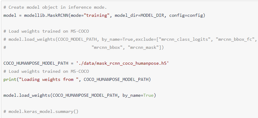 其中data/mask_rcnn_coco_humanpose.h5为预训练模型,annotations、train2014和val2014为我们提前准备好的最小数据集,包含了500张图片的标注信息。