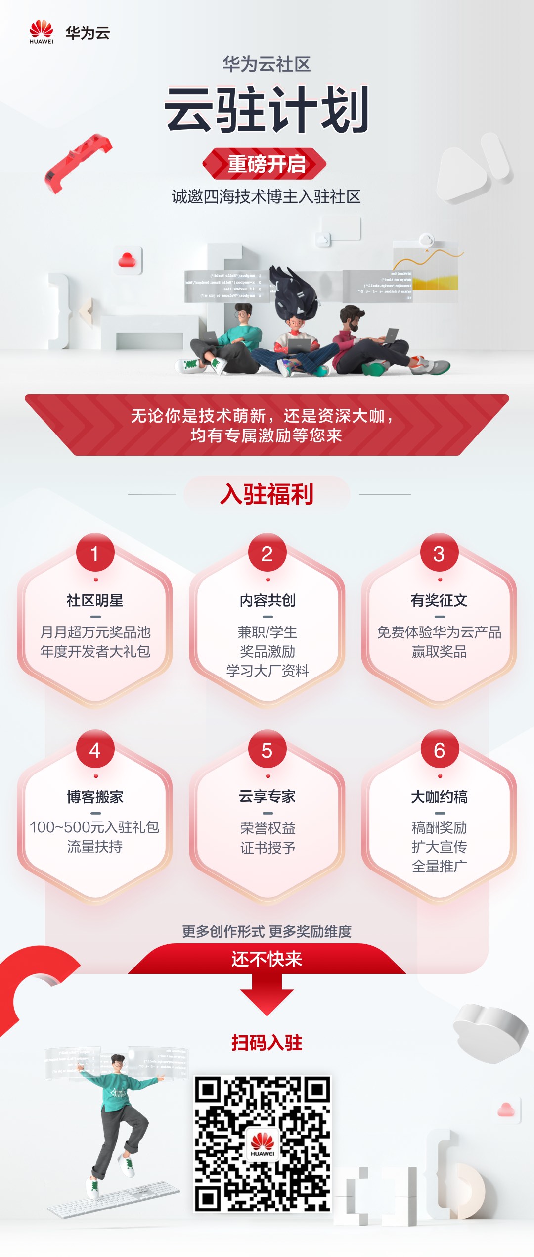 华为云·云驻计划持续招募优质原创技术博主入驻社区,创作赢好礼!