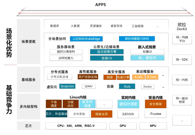 从服务器,到云、到边缘计算,到CT和OT的嵌入式场景,成为面向数字基础设施统一的开源操作系统