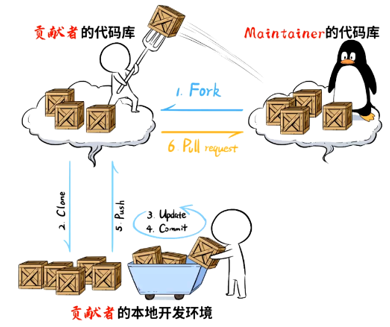 1.贡献者从社区官方代码库中fork—份代码到自己的库;