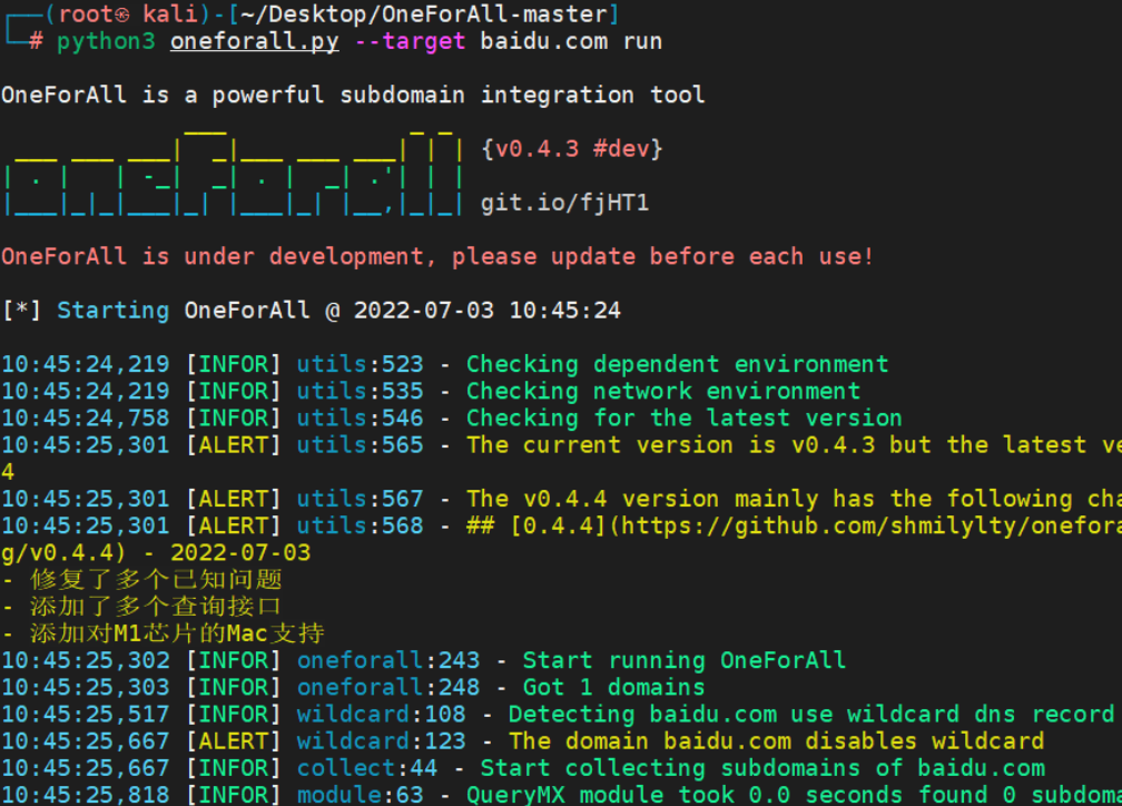 OneForAll是一款功能强大的子域收集工具