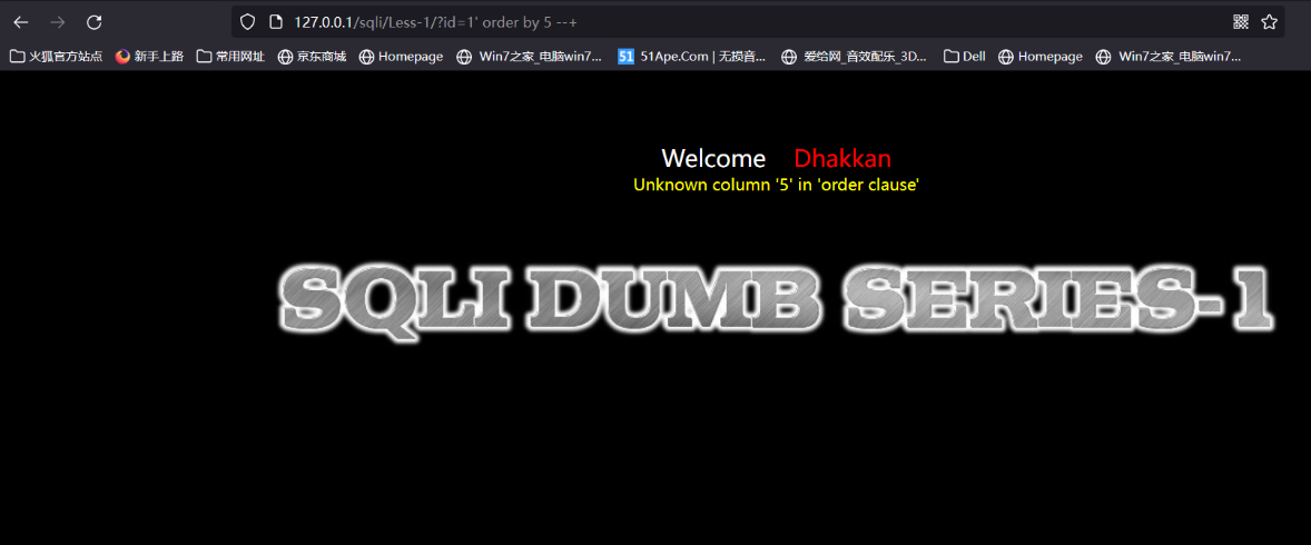 http://127.0.0.1/sqli/Less-1/?id=1' order by 5 --+