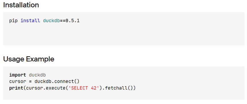 另外,DuckDB操作简单,编译和运行时无其他外部依赖。