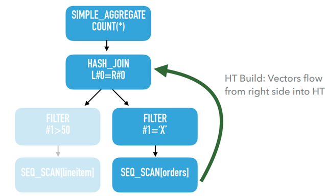 每个算子调用子算子的“GetChunk”来获取输入chuck(=set of vector 向量集)