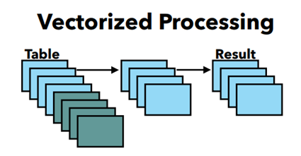 DuckDB采用向量化的解释执行引擎,而没有采用JIT(Just-in-Time)编译模式,是因为考虑可移植性。JIT依赖其他大量的编译库,例如LLVM。DuckDB采用固定最大值的向量(默认是1024),例如固定长度类型,例如整数,被作为原生数组来保存,变长的值,例如字符串,被作为一个原生数组的支付窜,指向一个单独的字符串堆(string heap)。