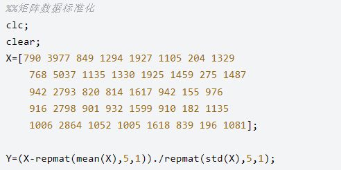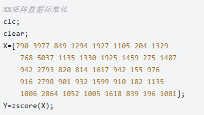 第一种方法:zscore() 函数可以直接处理括号中的矩阵进行标准化