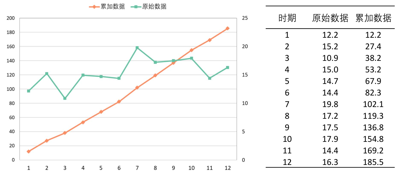 总体思路:1.对原始数据进行生成处理(例如累加的处理)寻找系统变动的规律