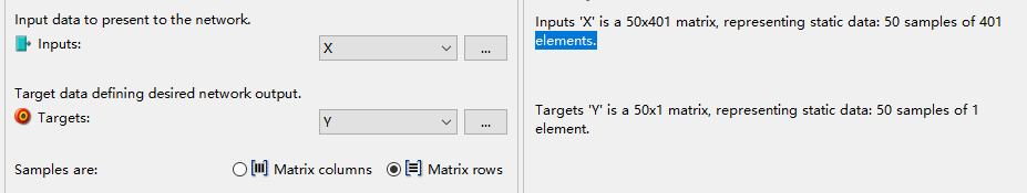 这里注意:查看右边注释,选择Matrix rows表示有401个指标,50个样本,符合数据表格